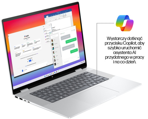 - matryca: ekran 16", rozdzielczość 2.8K 2880x1800, technologia wykonania OLED, proporcje 16:10, powłoka błyszcząca, powłoka dotykowa, zawias o zakresie odchylenia 360 stopni, technologia Low Blue Light, pokrycie barw 100% DCI-P3, jasność 400 nitów SDR lub jasność 500 nitów HDR, odświeżanie matrycy 48-120Hz