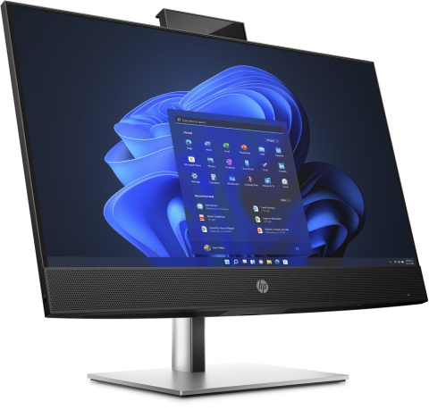 - akcesoria i dodatki: zasilacz | pudełko | czarna przewodowa mysz HP | czarna przewodowa klawiatura HP | odłączana podstawa oraz ramię/uchwyt