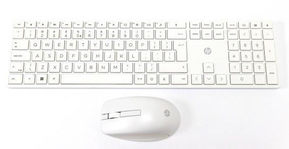 Bezprzewodowa klawiatura i mysz HP 650 4R016AAR#ABB biała, układ QWERTY polski programisty z dużym klawiszem enter (układ klawiszy widoczny na pierwszym zdjęciu), baterie w zestawie