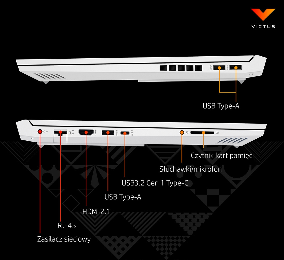 - porty i złącza: 1 port SuperSpeed USB Type-C (5 Gb/s, funkcja DisplayPort 1.4) | 3 porty SuperSpeed USB Type-A (5 Gb/s) | Ethernet RJ-45 | wejście mikrofonowe / wyjście słuchawkowe stereo (combo) | cyfrowe złącze HDMI 2.1