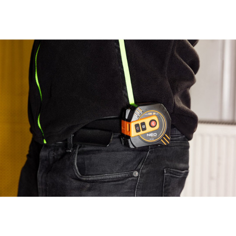 Dalmierz laserowy NEO TOOLS wykonany w klasie II, obsługuje jednostki pomiarowe: m, in, ft. Z jego pomocą możliwe jest wykonanie pomiaru odległości, pola powierzchni, objętości, pomiaru ciągłego, Pitagorasa, dodawanie oraz odejmowanie, pomiaru maksymalnego i minimalnego, pomiaru od początku i końca urządzenia.