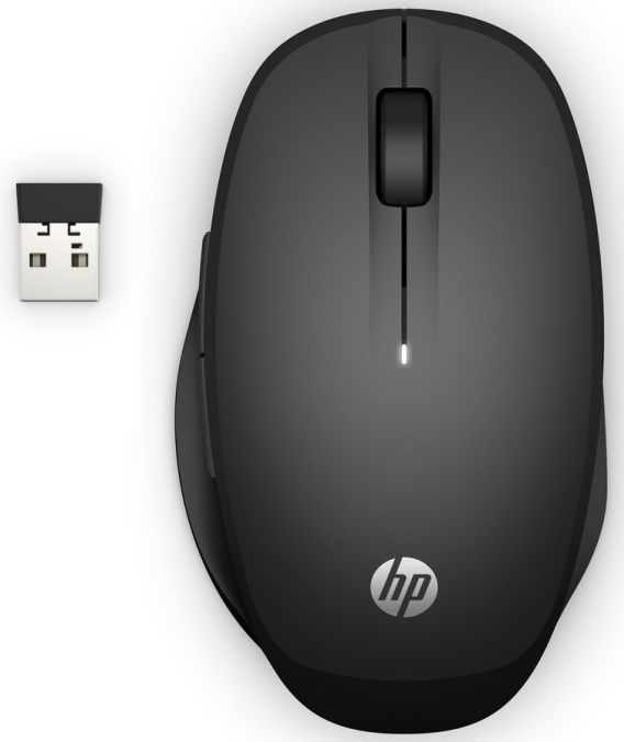 Jedna mysz, dwa tryby pracy, zero kabli: Dwa tryby pracy to większa wygoda i efektywność – połącz mysz HP Dual Mode Mouse 300 z dwoma komputerami za pośrednictwem Bluetooth lub przez Wi-Fi 2.4 GHz i przełączaj się jednym kliknięciem. W ten sposób przy pomocy jednej myszki możesz obsługiwać wiele urządzeń.