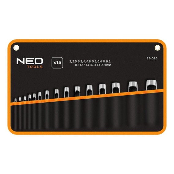 Zestaw 15 przebijaków do wycinania otworów średnica 2-22 mm etui NEO TOOLS
