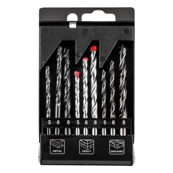 Zestaw 9 wierteł 5-6-8 mm do metalu drewna i cegły komplet uniwersalny GRAPHITE 54T431